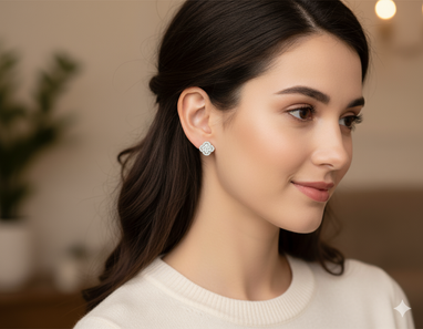 Answer 2: The stud earrings measure 12mm x 12mm (0.47 x 0.47 inches), making them a perfect size for everyday wear or special occasions.